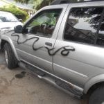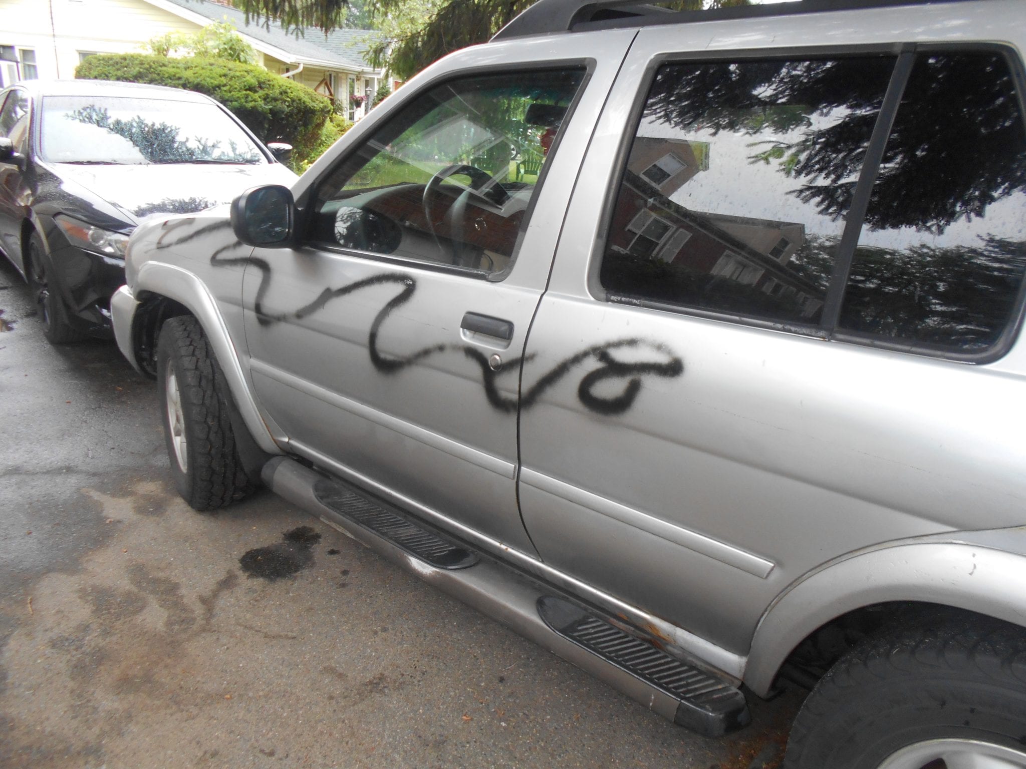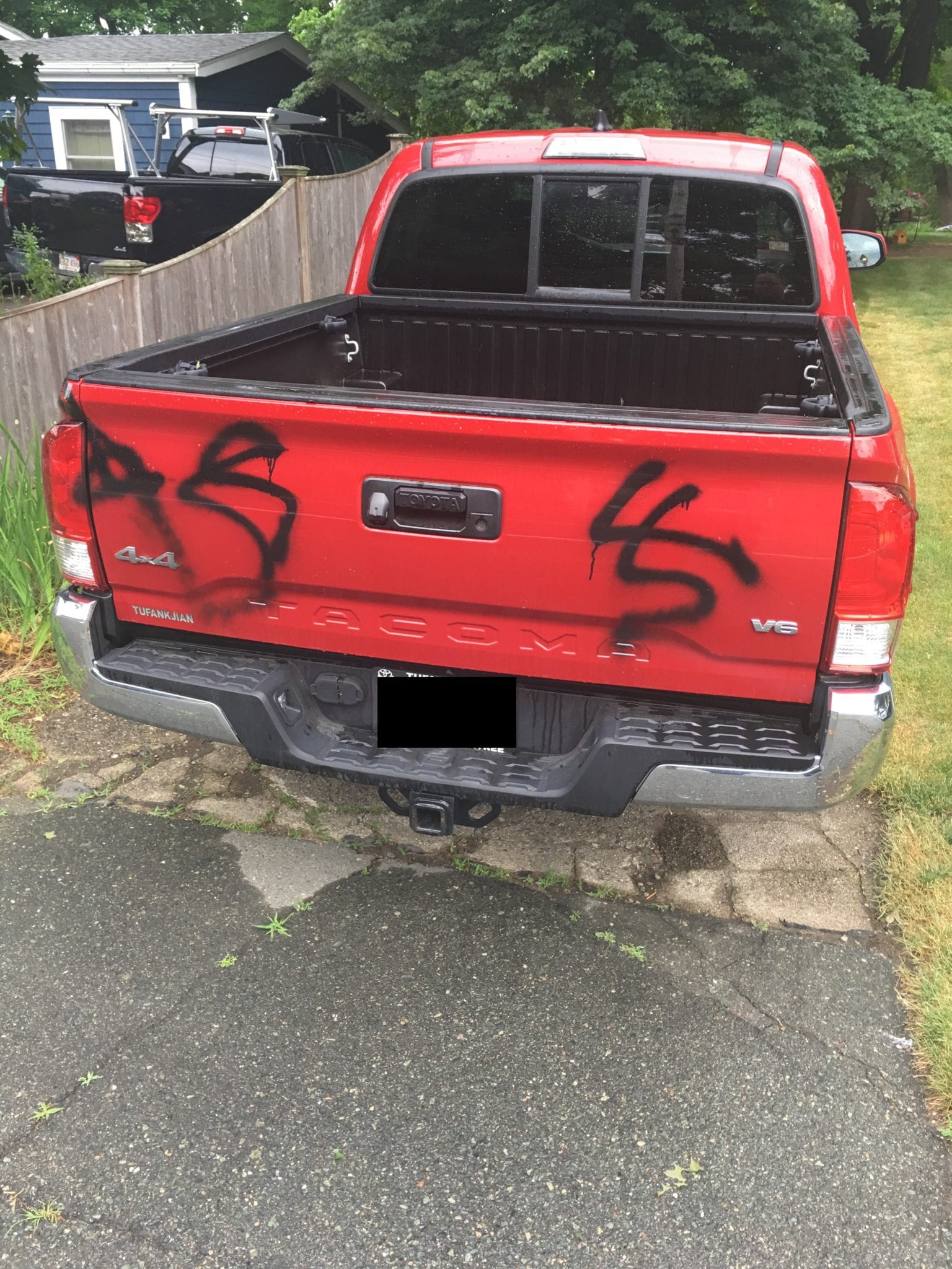 One vehicle had 666 spray painted on it and another was painted with a swastika. Two other vehicles were keyed. The rest of the vehicles had black spray paint sprayed along the sides and trunks of the vehicles.